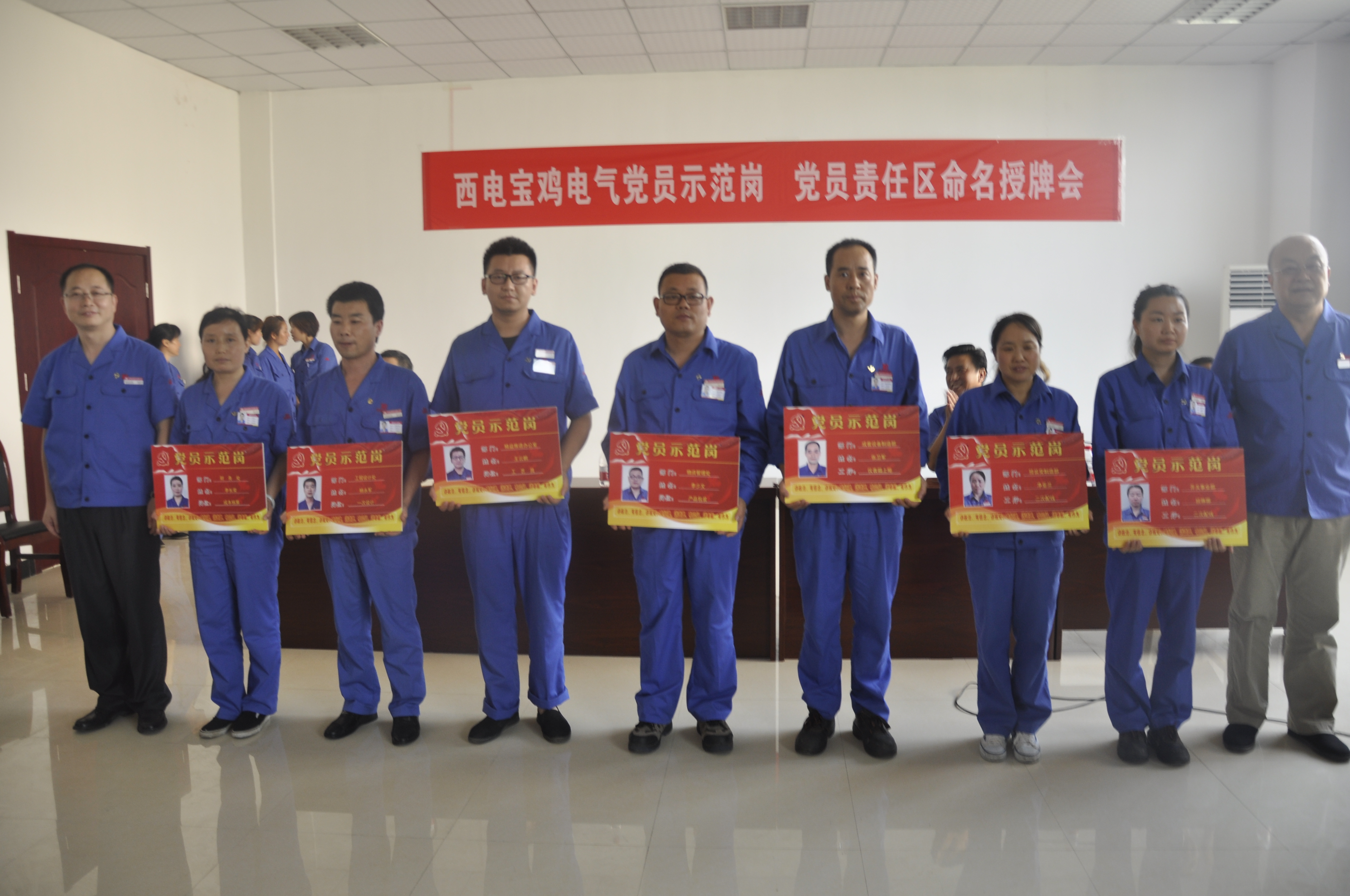 為扎實開展“發(fā)揮先鋒模范作用,為企業(yè)改革發(fā)展提質(zhì)增效做貢獻”黨員主題實踐活動,8月4日下午,公司舉行“黨員示范崗、黨員責(zé)任區(qū)”命名授牌儀式。公司執(zhí)行董事、黨委書記雒濤、總經(jīng)理朱安珂為財務(wù)處李長榮等7個“黨員示范崗”和成套設(shè)備制造部鈑金T線等3個“黨員責(zé)任區(qū)”授牌。楊永軍同志代表“黨員示范崗”、“黨員責(zé)任區(qū)”的同志作了表態(tài)發(fā)言。公司黨委副書記紀(jì)委書記付宗喜主持授牌儀式。各黨支部書記、相關(guān)處室負(fù)責(zé)人、“黨員示范崗”、“黨員責(zé)任區(qū)”及部分黨員代表共50余人參加了授牌儀式。